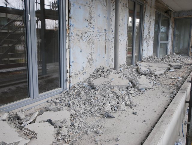 An den bestehenden Balkonen wird eine umfassende Betonsanierung durchgeführt und die Glasgeländer werden komplett ersetzt. Dies erfolgt zeitgleich mit der Montage der Glasfaserbetonelemente hausseitenweise von oben nach unten. Um die grossflächigen Bauteile mühelos mit dem Baukran versetzen zu können, wird im Zuge der Montage das Fassadengerüst stockwerkweise zurückgebaut. Im Mai 2022 soll die Gesamtsanierung der Gebäudehülle abgeschlossen sein.