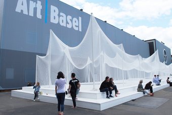 Sitzplattformen in Douglasie PEFC-zertifiziert. Brettstapel massiv auf Stahl-Unterkonstruktion.