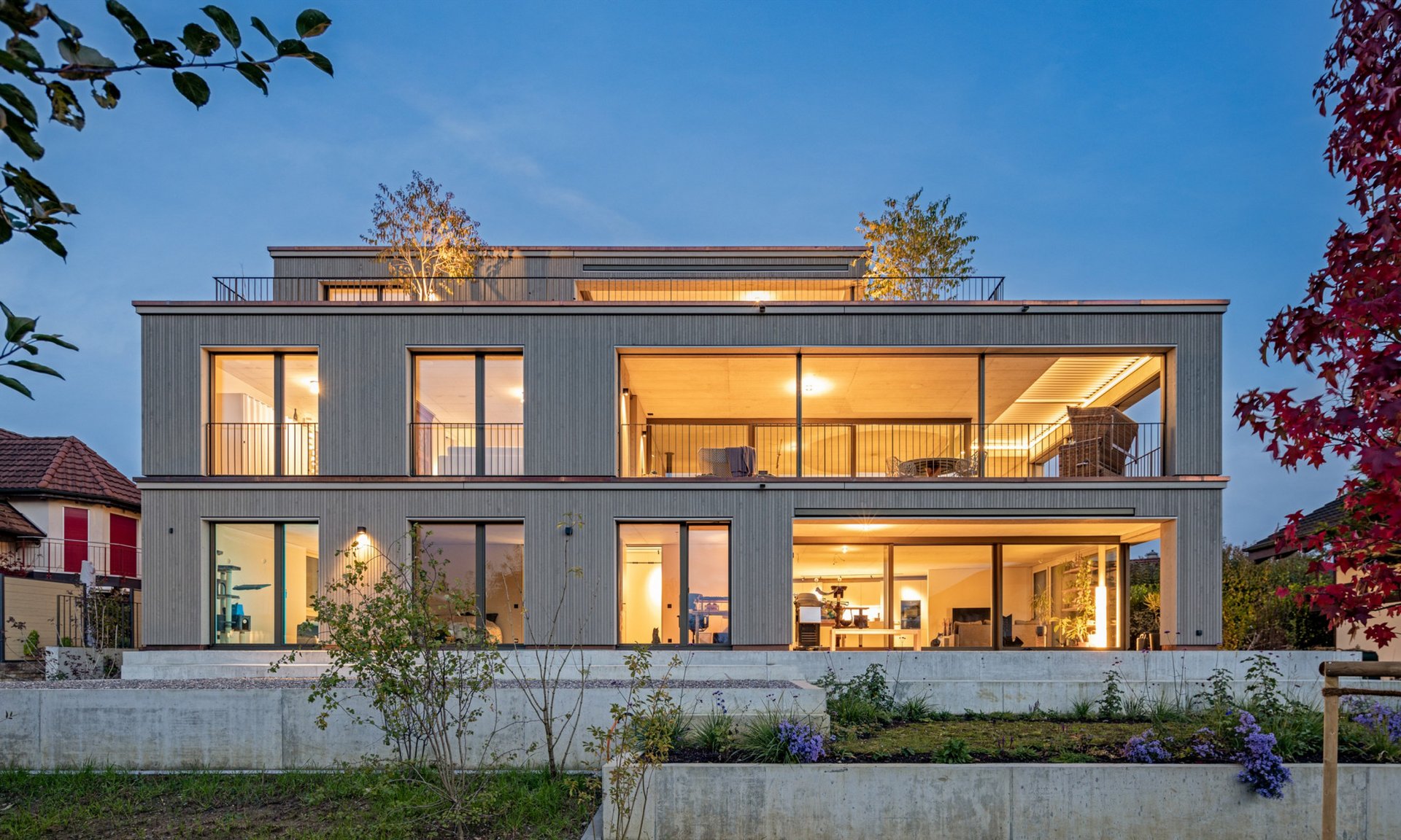 Dreigeschossiger Hybridbau mit drei Wohneinheiten.