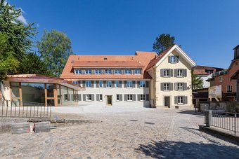 Umbau Bestand: Erdbebenertüchtigung der Geschossdecken. Neuer Dachaufbau und Bedachung mit Naturschiefer und Biberschwanzziegeln.